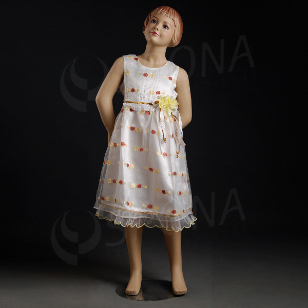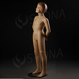 Figurína dívky s jedinečným postojem v tělové barvě, se skleněným podstavcem a prolisovanými vlasy.